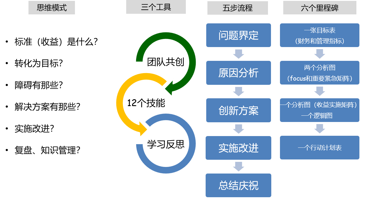 而《問題分析與解決》課程,就是這樣一個流程、一種模型、一套工具,使用該工具就可以讓大家運(yùn)用共同的思維語言快速有效地說明問題、討論問題、解決問題,制定系統(tǒng)的行動計劃并不斷改進(jìn)。